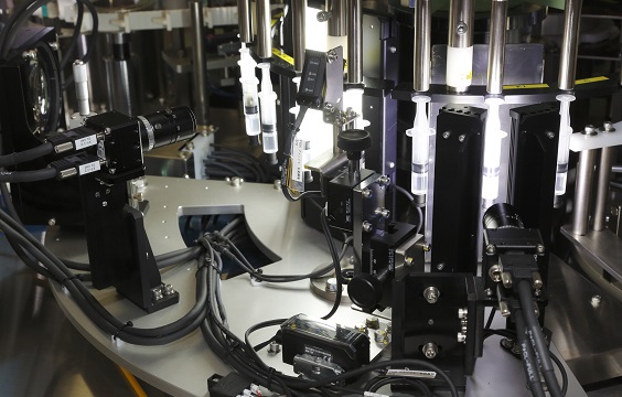設(shè)備首先通過高速攝像機,將醫(yī)療注射器生產(chǎn)線上的針筒逐個拍攝,拍攝動作完全不會影響產(chǎn)線的速度。